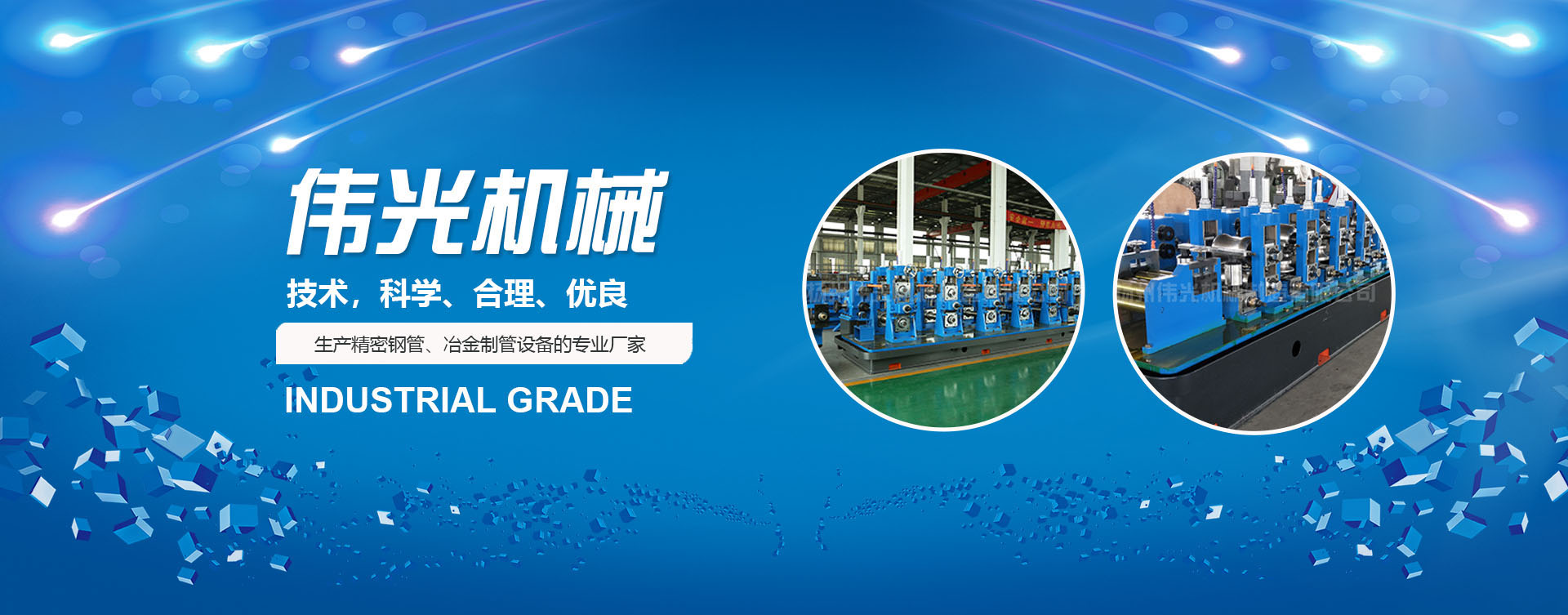 揚州偉光機械制造有限公司是生產精密鋼管、方管機組、邦迪管機組、焊管設備、焊管機組、鍍鋅管機組、冶金制管設備的專業廠家,廠區占地面積35000多m”,建有標準廠房10000多m2。目前公司設有焊接鋼管,冶金設備制造兩個車間,擁有2條具有國內水平的焊管生產線,承接小口徑精密鋼管生產,形成了精密焊管設備制造,旅游用品結構管二大系列產品。